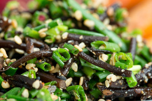 ひじきは非ヘム鉄を含む優秀食材。ビタミンCを合わせて摂取すると効率がいいので、赤ピーマンや大根、菜の花やブロッコリーなどと一緒にサラダにするといい。マヨネーズで和えると老若男女に食べやすいサラダになる。