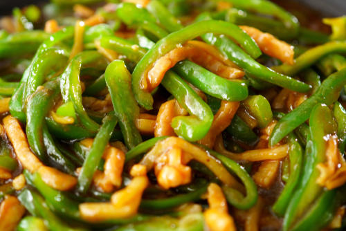 チンジャオロースをカロリーオフする方法は、やはり油を控えることである。油通ししたほうが美味しいのは誰もが知っている。しかし、ここは我慢し、テフロン加工のフライパンなどで油が少なくても焦げ付かない鍋を使うことが一番である。少量の油で、材料を炒めるのが一番効果的なのだ。
