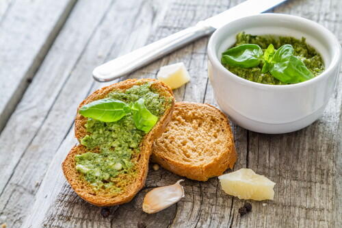 ジェノベーゼソースはパスタと絡めても美味しいが、パン・ピザ・サラダ・肉料理・魚料理などにもよく合う。ここではジェノベーゼソースの美味しい使い道を3種類紹介しておこう。
