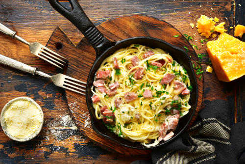 生クリームがなければ、卵とパルメザンチーズで濃厚な味に仕上がるカルボナーラ。本場のイタリアでは生クリームを使用しないという。また、さまざまなレシピサイトをチェックすると、人によって使用する材料や作り方が微妙に異なるようだ。