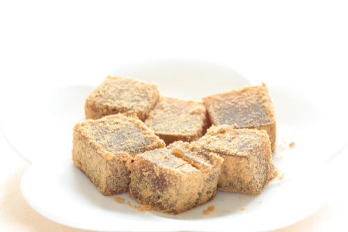 わらび餅がすぐに腐敗してしまう原因は、傷みの要因となりやすい水分とでんぷん質の割合が多いせいだ。わらび餅の原材料は山菜の蕨から精製される本蕨粉で、成分のほとんどがでんぷん質なのである。