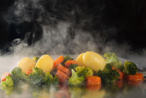 また、スープの具材としても温野菜を活用することが可能である。スープに野菜を入れるときは、煮込みすぎると食感や旨味が失われることもあるので、できれば先に下茹でをしておき、あとから野菜を加えるだけにしておくと見た目の美しさを保つことができる。