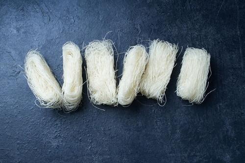 「日本食品標準成分表2020年版(八訂)」には、「緑豆はるさめ/普通はるさめ」や「乾燥/ゆで」などいくつか春雨の栄養価が収録されている。このうち一般的に食べられているのは「緑豆春雨」と呼ばれるもの(※2)。そこでまずは基本の「緑豆はるさめ(乾)」の100gの栄養価を確認しておこう。