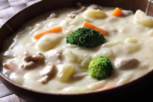 もっとも手っ取り早いのはヘルシーな食材をたくさん使うことだ。たとえば根菜類は、野菜の中ではカロリーも糖質も高めである。これらの食材を減らし、ブロッコリーやきのこ類などヘルシーな食材を多めに使うことでトータルのカロリーを減らすことができる。また肉を入れる場合は鶏肉を選ぶと、牛肉や豚肉を使った場合よりもヘルシーに仕上げられる。