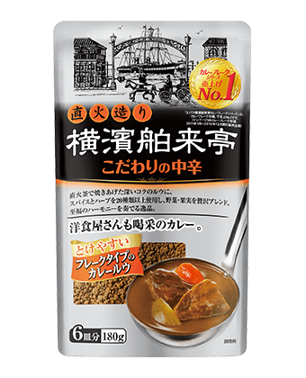スーパーのカレールウ売り場をのぞくとそこには数多くのルウが並べられている。大きく分けて、その種類は固形とフレークの2つ。まだまだ固形が優勢だが、カレーフレークも確実にその幅を広げている。カレーフレークは、固形ルウに比べてこだわりの商品が多く、迷うこともあるだろう。そんなときは『横濱舶来亭カレーフレーク』をおすすめしたい。
