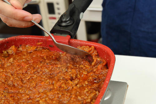 作り方はいたって簡単。分量外のサラダオイルをフライパンに入れ、合挽き肉とたまねぎを炒める。肉に火が通ったら、『横濱舶来亭カレーフレーク』とトマト缶を投入。トマトを少し潰すように混ぜ合わせながら、弱火で10分煮込めば完成。