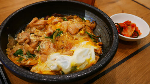 1分ほど経ったところでふたを開け、残りの溶き卵を加えて半熟になったら火を止め1分ほど蒸らしておく。器にごはんを盛り付け、煮込んだものをすべらせるようにのせたら親子丼の完成だ。好みでカマボコを入れても美味しいし、三つ葉をトッピングすれば見栄えもいい。