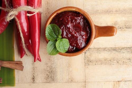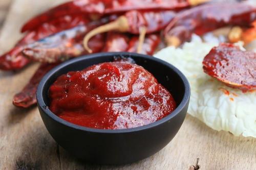 コチュジャンは、もち米や米に麹や唐辛子を加えて作る韓国(朝鮮半島)発祥の辛味調味料である。唐辛子を使っているため真っ赤な見た目をしているが、糖が含まれているため辛味だけでなく甘みも感じるのが特徴である。一方で、糖を含んでいるため焦げやすいのが欠点となっている。基本的には具材に火が通ってから料理に加えたり、ビビンパなどのトッピングに使われたりしている。