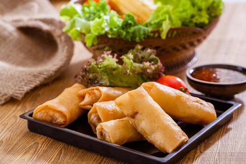 春雨サラダをボリュームアップたいときは、サクサク食感が魅力の春巻きにアレンジする方法がおすすめ。油で揚げてボリュームおかずに変身させれば、メインデッシュとして登場させることもできる。
