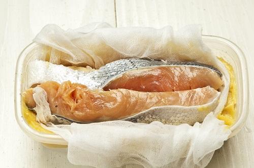 まず、生鮭の冷蔵保存でおすすめしたいのが、漬ける方法だ。酒粕や味噌に漬け込むと、保存が効くだけでなく鮭自体の風味がアップするため、生鮭の美味しさを引き出して調理したいときに試してほしい。下ごしらえの方法は、電子レンジで加熱した酒粕と味噌を混ぜ合わせ、好みで酒やみりんを足した漬け込み用調味料を作る。バットに広げた調味料に生鮭を漬け込み、冷蔵保存で2~3日後が食べごろだ。ほかにも、焼いた生鮭をしょうゆと鮭の合わせ漬け汁に漬けて冷蔵保存する方法もある。どちらも生鮭に味を付ける下ごしらえをすることで、冷蔵保存の期間を延ばしつつ美味しさを高める方法である。