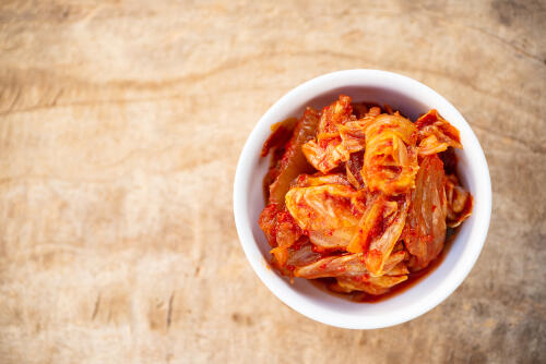 キムチをトッピング