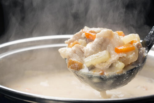 じゃがいもは普通の味噌汁に入れる場合もあるが、酒粕と組み合わせるとまた違った味わいを楽しめる。酒粕を入れると味噌汁が滑らかな味わいになり、シチューを思わせるような風味になる。したがって、じゃがいもとの相性も自然とよくなるのだ。特にシチューが好きな人は、ぜひじゃがいもを入れてみてほしい。