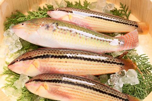 瀬戸内海付近の地域では、夏を代表する高級魚。関東ではほとんど流通しておらず、オスとメスで色が違うことが特徴だ。このほかにもキュウセンの特徴として、性転換が挙げられる。幼魚にあたる時期はメスで赤色、成魚になるとオスで色は青色になる。身は水分を多く含み、加熱しても硬くならない。生食から焼き、煮付け、揚げなど、どのように食べても美味しい魚である。