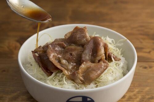 豚丼のタレは、基本的には甘辛の味付けである。醤油だけでなく、酒やみりん、砂糖が入り、なおかつ、コクを出すためにバターを入れる場合もよくある。