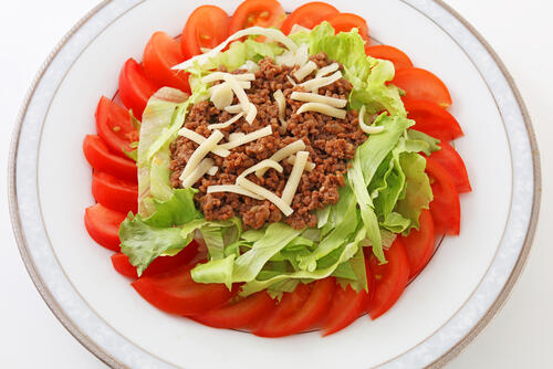 挽き肉にチーズ、レタスやトマトといった食材で構成されているタコスの具は、どれもそれほど糖質が多くなく、糖質制限中でも安心して食べることができる一品だ。しかし、ごはんに具をのせてタコライスとして食べるのであれば、ごはんの量が糖質の量に直結してしまうので注意が必要だ。タコライス100gあたりの糖質量の目安は約20g。仮に1食で500g分のタコライスを食べたのであれば糖質は約100gとなる計算だ。