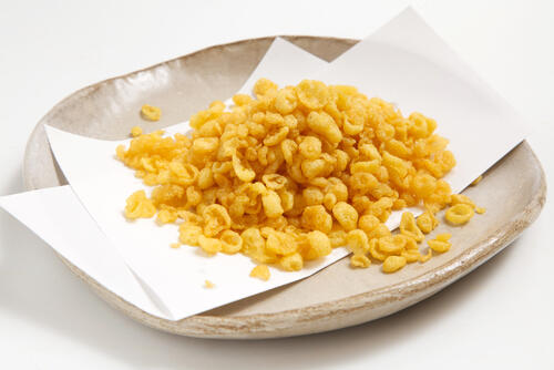 イカ天と聞くと、柔らかいイカの天ぷらを思い浮かべるかもしれない。それももちろん間違いではないのだが、広島風お好み焼きに加えるイカ天とは、イカ入りのすり身を揚げたスナック菓子のことを指す。