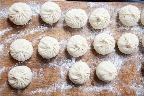 肉まんは、豚のひき肉と玉ねぎを合わせて味付けをした肉だねを、薄力粉と牛乳、ベーキングパウダーなどを合わせて捏ねた生地で包んで蒸し器で蒸して作る。薄力粉だけではなく強力粉を使ったり、ベーキングパウダーではなくイーストを使って発酵させたりするものなど種類はさまざまだ。