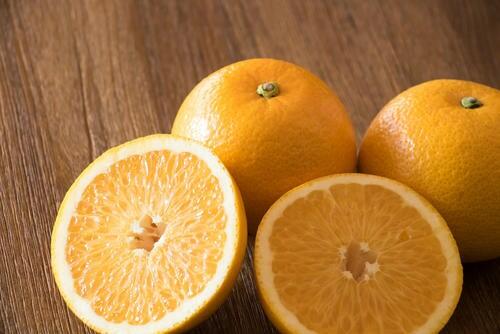 早生八朔は八朔よりも早い時期に収穫され、皮が薄いのが特徴。八朔というと皮が分厚くむきにくいので敬遠している人も多いが、早生八朔は比較的、皮がむきやすい。皮が薄い分、果肉もびっしり詰まっているので、より食べごたえがある。あまり日持ちはしないので、早めに食べる必要がある。