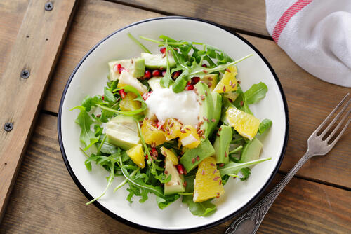 はるかは別名・サラダみかんとも言われる。ドレッシングは市販のものでも構わないが、はるかの果汁を使って作ると、より爽やかな味わいとなる。はるかの果肉が見えるように盛りつけると、見栄えもよい。