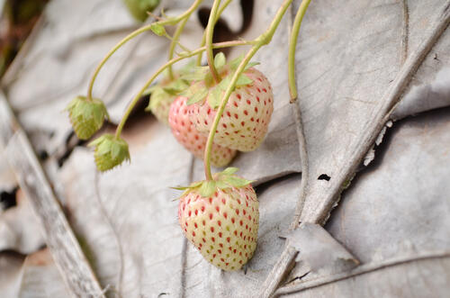 白いいちごが白いのは、決して日陰で育てたわけでない。そもそもアントシアニンを持たない、あるいは合成されにくい種類のいちごなのだ。初恋の香りに関しては、突然変異で誕生した白いいちごを元にして研究開発されている。残念ながら、交配などは一般公開されていないようだ。