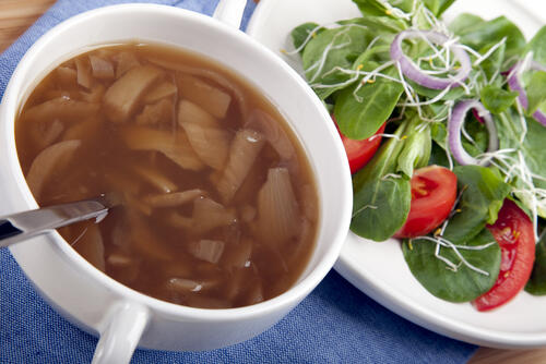 洋風のエッグベネディクトは、コンソメスープが一番合う。味付けを薄めにして汁まで飲めるようにすれば、溶け出た水溶性ビタミンも逃すことなく摂取できるだろう。
