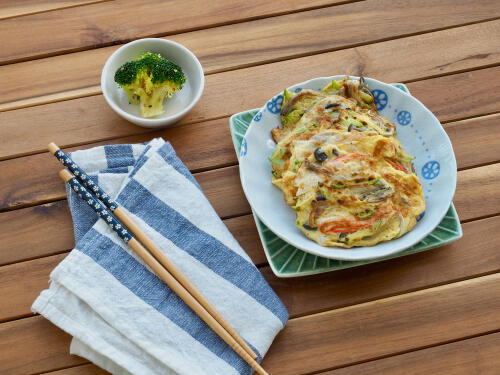 低カロリーの具の割合を増やせば、チヂミ全体としてのカロリーを抑えることができる。たとえば、細かく刻んだ葉物野菜やにんじんなどを加えると、カロリーオフだけでなく栄養を増やすこともできる。ただし、具を増やしていくと粉の割合が減るため、きれいな形に焼くのが難しくなるだろう。見た目にこだわる方は、頑張ってきれいに焼くしかなさそうだ。