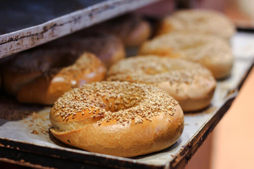 ベーグルはもともとユダヤ系の人々の主食であった。アメリカで人気に火がつき、今ではいろいろな国でも食べられるようになった。普通のパンとは違い、生地を発酵させたあとにお湯で茹でてから焼く製法がとられている。この独特の作り方によって、他のパンとは違うモチモチとした食感が生まれるのである。