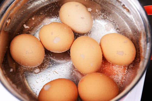 半熟卵を作る際には、沸騰してから約7~8分で取り出すのが目安だ。少し水分の残った半熟卵ができる。