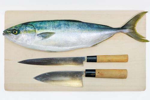 捌き方のコツは大前提として、家庭用の万能包丁ではなく、なるべく出刃包丁を用いること。ぶりは身体が大きい分、身が厚く、骨や皮が硬い場合があるため、魚を捌くことに特化した出刃包丁が適しているのだ。