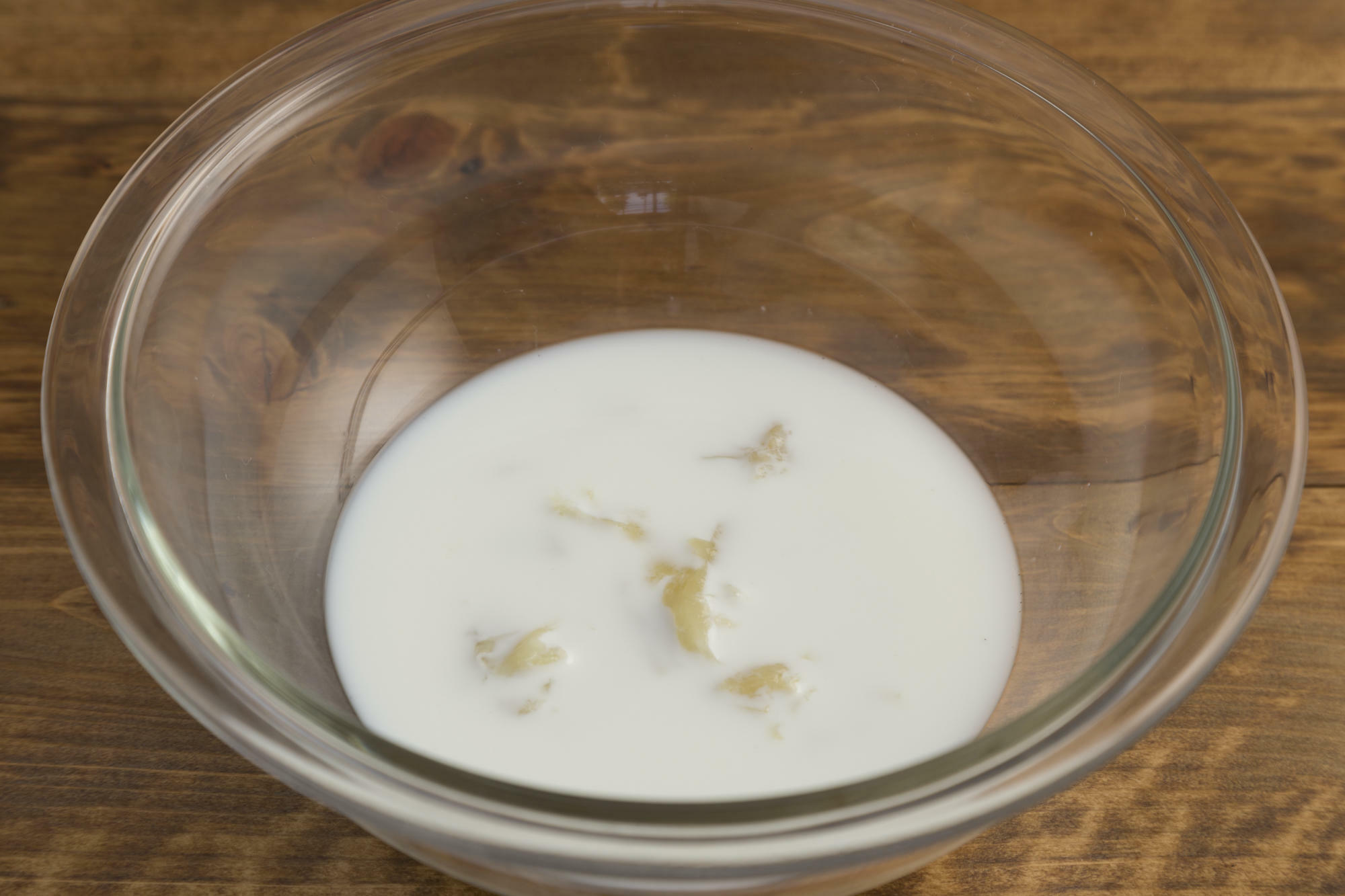 にんにくの皮をむいて小鍋に入れ、かぶるくらいの牛乳も入れる。弱火で数分間煮込み、にんにくに火を通す。牛乳を使用せずにトースターなどで加熱してもよいが、牛乳で煮込むことにより、にんにく独特の臭みを消すことができる。