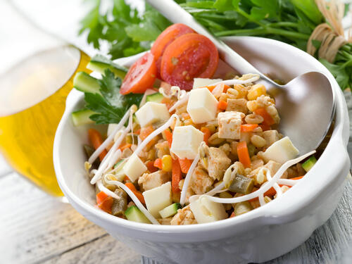 家庭料理によく使用する豆腐は、木綿豆腐と絹豆腐の2種類がある。そのため、豆腐サラダの食材の選び方でまず悩むのが豆腐ではないだろうか。木綿豆腐と絹豆腐、見た目はそっくりだが、それぞれ特徴がある。たとえば、木綿豆腐は絹豆腐よりも水分が少なく、濃厚な味わい。ざらざらとした舌触りで、しっかりとした食感だ。一方、絹豆腐は水分が多くあっさりとした味わい。なめらか舌触りで、柔らかいのが特徴である。それらの特徴を踏まえたうえで、豆腐を選ぶときは何を楽しみたいかによって選べばいいのだ。豆腐サラダで食感を楽しみたいという人は、絹豆腐を選ぶといいだろう。そうではなく、豆腐そのものの味を楽しみたい人は木綿豆腐を選べばよい。