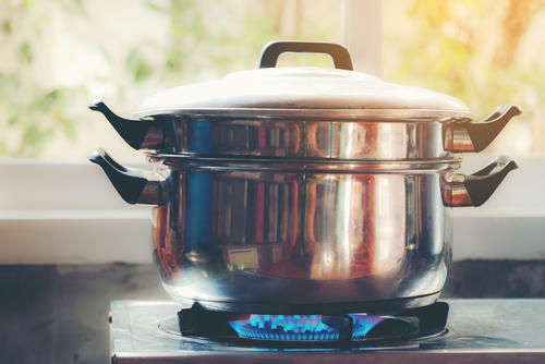 皮付きの里芋はたわしを使って土を洗い流す。一口大にカットして、蒸し器で柔らかくなるまで加熱する。蒸し器がない場合は、沸騰した鍋で火が通るまで茹でてもよい。