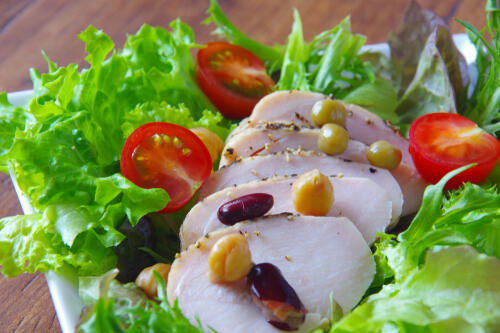 確かに鶏ハムはさっぱりとして美味しい料理ではあるが、育ち盛りの子どもや男性にとってはおかずがそれだけだと少々物足りないと感じることもあるだろう。鶏ハムは主菜兼サラダといった形で生の野菜のうえにのせて出せば栄養のバランスも取れておすすめだ。