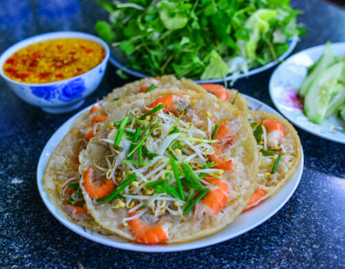 バインセオは、日本のお好み焼きよりも1枚あたりのカロリーも低く、不足しがちな野菜を補うこともできるので、体重を気にしている人でも安心して食べることができるといえる。