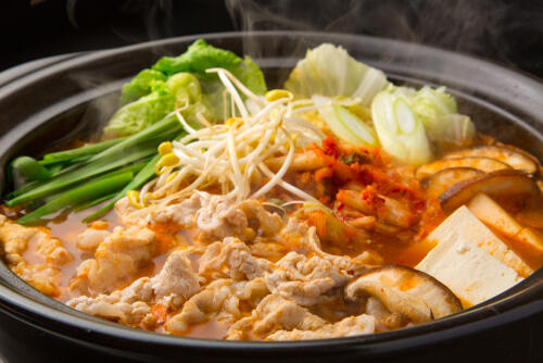 鍋にあさり・酒・水を入れ、火にかけてあさりの殻が開いてからアクをすくってとり除く。そこへ豚肉を入れ3分ほど煮込む。次に豆板醤・味噌・醤油・砂糖を加えて味を調え、もやしと白菜を入れてさらに煮る。すべてに火がとおったら最後にニラを入れ、ひと煮立ちさせて完成だ。
