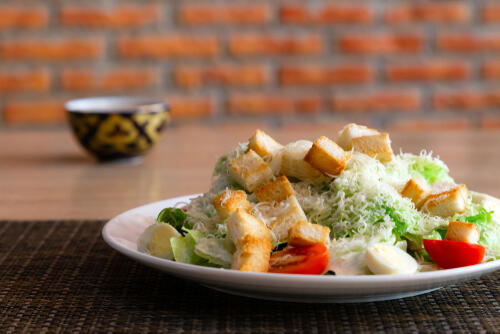 シーザーサラダに含まれる糖質は、食パンを揚げて作るクルトンが主役だ。シーザーサラダといえば、カリカリのクルトンだが、糖質制限をしている人や、糖質が気になる人は、シーザーサラダを食べるときにクルトンの半分はよけて食べないなどの工夫をした方がよいかもしれない。