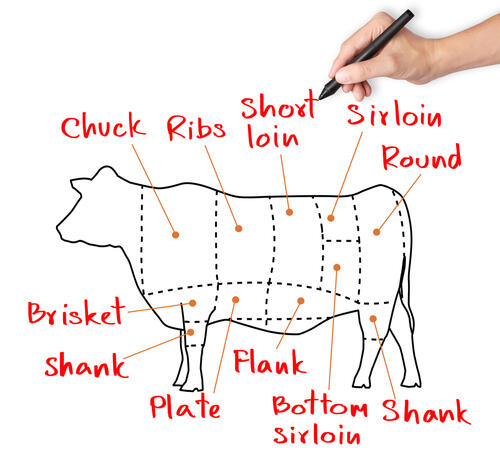 シャトーブリアンは、「ロース」「もも」「すね」「ヒレ」「サーロイン」など、おなじみの牛肉の部位名と同様に、牛肉の部位の名前である。