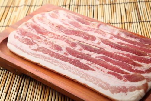 「日本食品標準成分表」には、生の豚バラ肉だけでなく焼いた豚バラ肉やバラ肉のベーコンなどの栄養価も収録されている。そこで調理した豚バラ肉100gあたりのカロリーも確認しておこう。