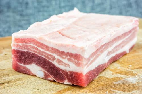 前述の豚バラ肉のカロリーは100gあたりのものであるが、市販の豚バラ肉は必ずしも100gで売られていない。そこで薄切り豚バラ肉やブロック豚バラ肉など、形状・重さ別のカロリーをまとめておく。なお、豚バラ肉1gは約3.66kcalなので、「豚バラ肉の重さ×3.66kcal」でカロリーの算出が可能だ。