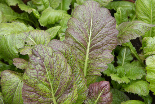 めはりずしで有名な三重県熊野市で主に栽培されている高菜。鮮やかな赤紫色の葉が特徴的で、緑色の葉をもつ「青大葉高菜」もある。