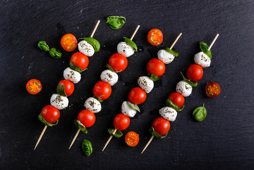 トマトの代わりにプチトマトを使用してもOKだが、その場合もモッツァレラチーズをプチトマトの大きさに揃えることをお忘れなく!