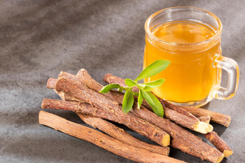 リコリスの根には、グリチルリチンという薬効成分が含まれている。グリチルリチンには、炎症を抑える働きなどが期待できるといわれている。
