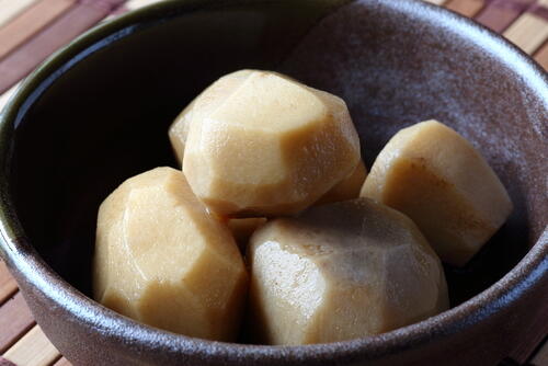 冷凍しておいた里芋は、凍ったまま調理可能。煮物や汁物に使うときは、凍ったまま鍋に入れるだけなのでとても手軽だ。下茹でしてあるので、ほかの具材よりも後に入れたほうがよいだろう。冷凍・解凍することで細胞が壊れるので、生の状態で煮るよりも味がしみやすいのも大きなポイントだ。