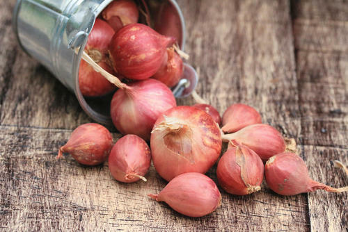 エシャロットとは、ユリ科の玉ねぎの変種。ベルギーエシャロットと呼ばれることもある。見た目は玉ねぎ同様、茶色の皮に包まれているが、むくと紫玉ねぎのように赤紫色の身が現れる。甘みが少なく、ほど良い辛味と高い香りが特徴的。玉ねぎとニンニクの中間のような味と見た目というとわかりやすいだろうか。日本ではほとんど生産されていないようで、多くはヨーロッパなどからの輸入物である。スパイスとして乾燥タイプも販売されている。