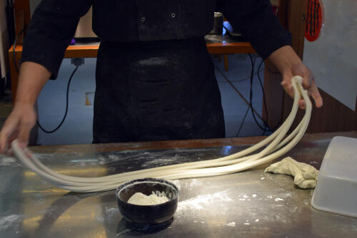ビャンビャン麺は実は、数年前からトレンドが噂されてきた麺のひとつである。生地を専用のナイフで切りながら鍋に入れていく刀削麺がブームを迎えたあと、次なるトレンド麺として注目を集めたことがあるのだ。麺を伸ばしている光景がユニークであること、そしてインパクト抜群な漢字など、キャッチーな要素を併せ持っていることもブームを後押ししたが、大流行とまではいかなかった。
