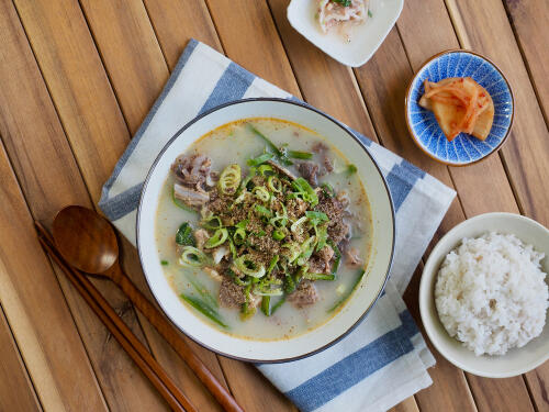 クッパは韓国のスープごはんのこと。クッ=スープ、パプ=ごはんを意味する韓国語で、合わせてクッパと呼ばれている。郷土色の強い料理のようで、地域によっても味わいはさまざま。現地ではスープとごはんが別々に提供されることも多く、スープとごはんを一緒に食べるようなものは、総称してクッパと呼ばれる。我々がよく知るソルロンタンなどもクッパのひとつだ。クッパを雑炊と思っている人がいるようだが、実際は煮込むというよりはかけて食べるという印象なので、スープごはんと捉えるのが正解だ。