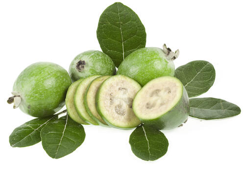 一時期ブームになったので、知っている人もいるかもしれないが、現在の日本ではめずらしいであろうトロピカルフルーツ、フェイジョア。