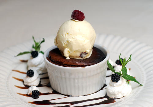 スフレは基本的に温かい食べ物だが、冷たいアイスやクリームなどをのせて食べるのもおすすめだ。温かいスフレと冷たいアイスが絡み合って、さらに美味しく食べられるだろう。チョコレートやチーズなど、デザート系のスフレならアイスやフローズンフルーツなどをのせるとよいだろう。料理系のスフレなら、冷たいチーズソースなどスフレの味に合わせたものをトッピングするのがおすすめ。