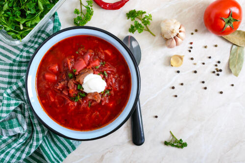 世界三大スープにも入るほどのボルシチ。工程と材料が多くて、一見難しそうと思ってしまうが、案外手抜き料理なのだ。ボルシチを食卓に出したら家族からの株もあがること間違いなし。保存もできるので、次の日の一品スープにもなり、家族からも喜ばれるだろう。日本の味噌汁や鍋の感覚で自宅でも気軽に作ってみよう。ぜひ、本場のようにサワークリームをトッピングして食べてほしい。