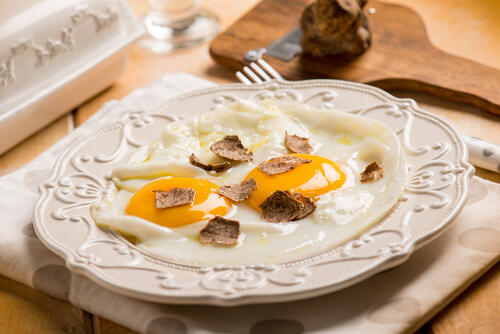 バターなどを使って調理した卵料理と白トリュフの相性は非常によい。卵のまろやかな味に白トリュフの香りが組み合わさると、最高の味わいになるだろう。中でも、白トリュフを乗せた目玉焼きは最高の贅沢との声もある。